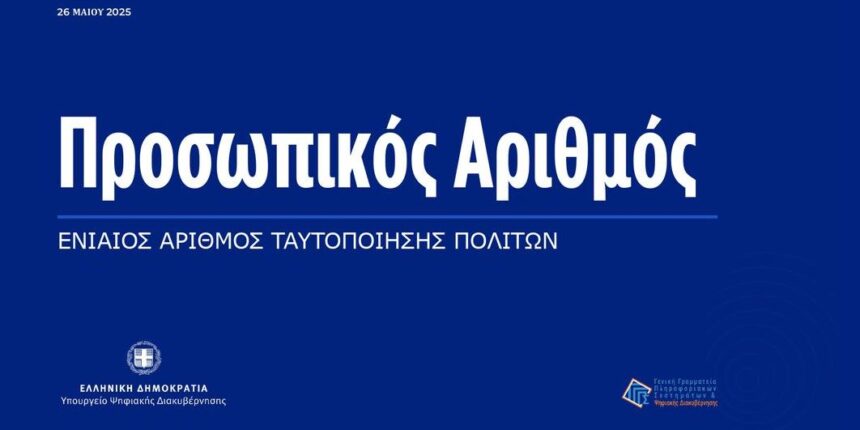 Υπενθυμίζεται ότι ο Προσωπικός Αριθμός αποτελεί μοναδικό αριθμό ταυτοποίησης του πολίτη για τις συναλλαγές του με το Δημόσιο και αποσκοπεί στη βελτίωση της εξυπηρέτησης, τόσο στις ψηφιακές όσο και στις φυσικές υπηρεσίες, μειώνοντας την ανάγκη χρήσης πολλαπλών αριθμών και διασφαλίζοντας την ακρίβεια των στοιχείων που τηρούνται στα βασικά μητρώα. Η χρήση του είναι αποκλειστικά για τις συναλλαγές με τις δημόσιες υπηρεσίες και συμβάλλει στην απλοποίηση των διαδικασιών με απόλυτο σεβασμό στην προστασία των προσωπικών δεδομένων.
