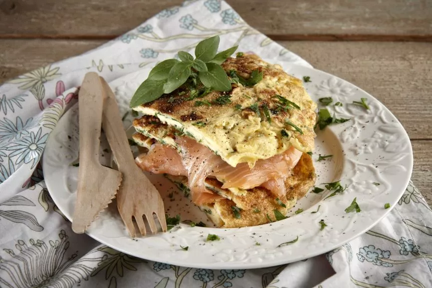 Ομελέτα με μυρωδικά και καπνιστό σολομό