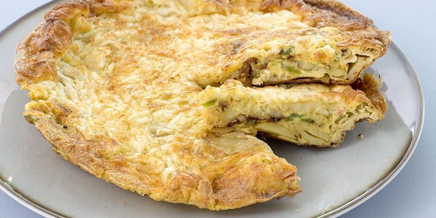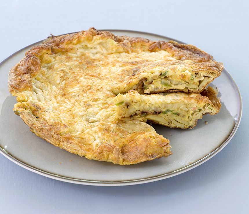 Ψήνουμε την ομελέτα στον φούρνο για περίπου 20-25 λεπτά. Μόλις σφίξει εξωτερικά, την τουμπάρουμε σε ένα πιάτο.