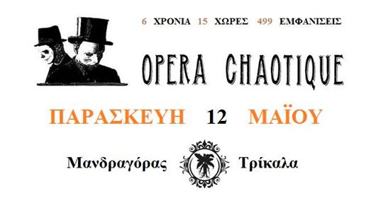 Με αναπάντεχα ανατρεπτικό χιούμορ, άκρως σουρεαλιστική φαντασία και εκρηκτικές μουσικές αλχημείες, οι Opera Chaotique έχουν καταφέρει μέσα σε λιγότερο από τέσσερα χρόνια να χαρτογραφηθούν ως ένα απολύτως μοναδικό φαινόμενο του μουσικού στερεώματος. Το ιδιαίτερο αυτό δίδυμο που καταπατά επιδεικτικά τις διαχωριστικές γραμμές ανάμεσα στην όπερα, τη τζαζ, το καμπαρέ και την ποπ, ξεχώρισε αμέσως για το ιδιαίτερο μουσικό στίγμα, τη μοναδική αισθητική και την σαρωτική σκηνική παρουσία τους.