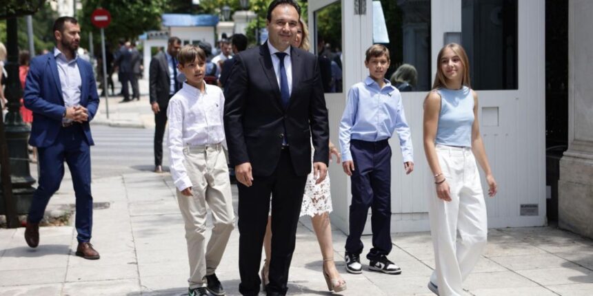 Στο Προεδρικό Μέγαρο προσήλθαν και οι Τρικαλινοί υπουργοί, ο Κ. Σκρέκας συνοδεύομενος από τη σύζυγο του Ειρήνη και ο Δημ. Παπαστεργίου με τη σύζυγό του Σούλα Μπράκη και τα τρια τους παιδιά