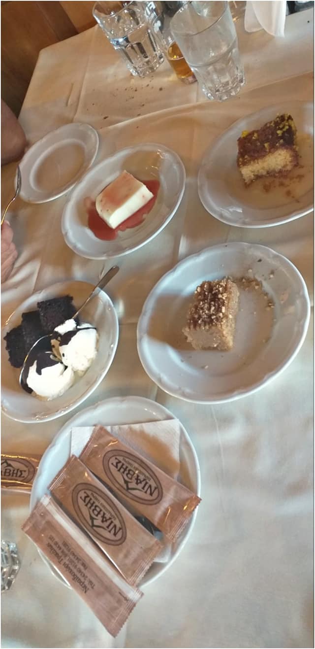 Το βλέμμα ταξίδεψε στη σάλα ..τη γεμάτη κόσμο..στις βεράντες ..στα τραπέζια έξω..τα γεμάτα κόσμο κι αυτά…..και περίμενα να δω πότε θα μπορούσαμε να χορτάσουμε την ακόρεστη πείνα μας…