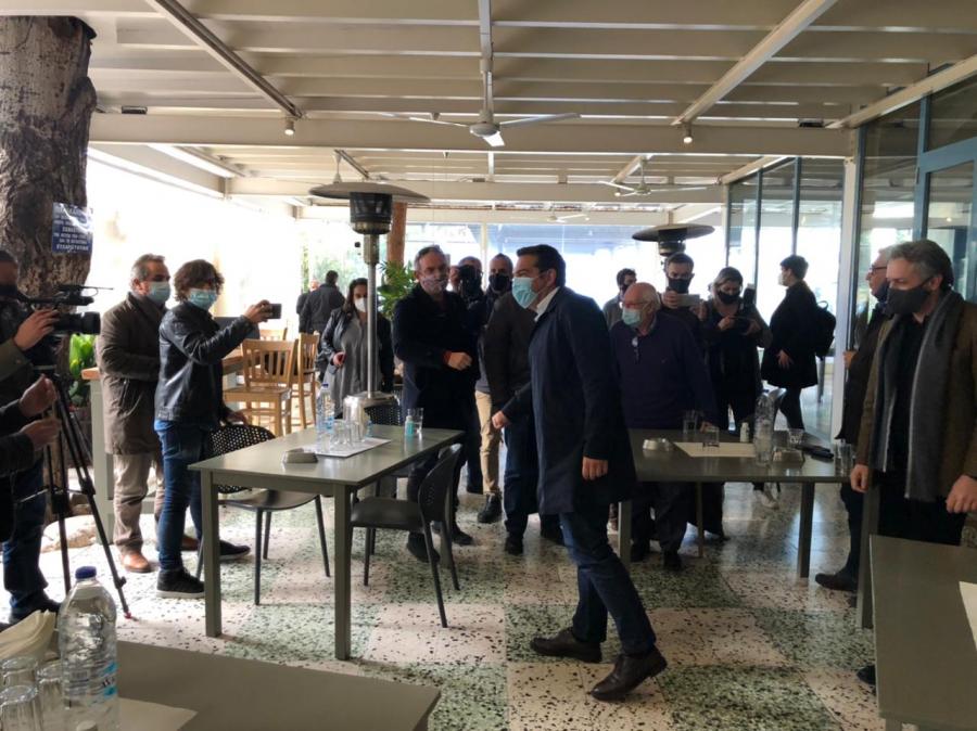 Στις εικόνες διακρίνονται, μάλιστα, και άτομα που έχουν βγάλει τη μάσκα για να χαιρετήσουν τον Αλέξη Τσίπρα.