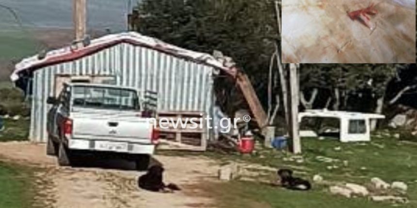 Κηλίδα αίματος στο κατεστραμμένο απ’ το σκεπάρνι στρώμα της καλύβας όπου ξεκίνησε η συμπλοκή [πηγή: Star Λαμίας]