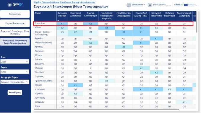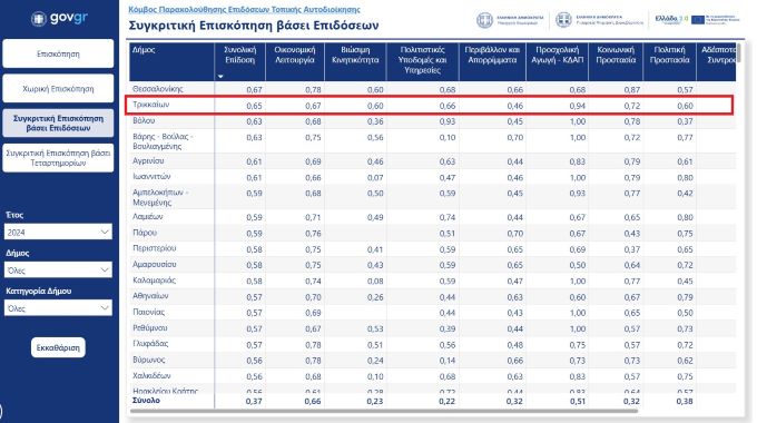με τον Δήμο Τρικκαίων να καταγράφει υψηλούς δείκτες.