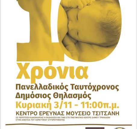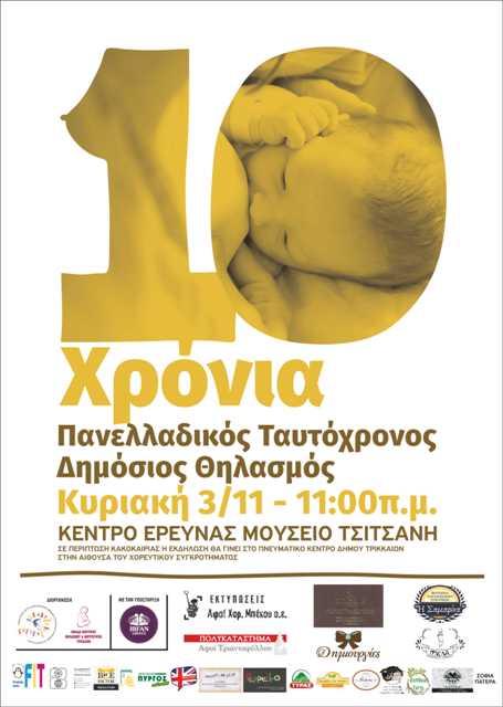Στα Τρίκαλα, για τρίτη συνεχόμενη χρονιά, θα πραγματοποιηθεί εκδήλωση-γιορτή για τον μητρικό θηλασμό, ο Πανελλαδικός Ταυτόχρονος Δημόσιος Θηλασμός, στις 3 Νοεμβρίου 2019 στις 11π.μ.στον αύλειο χώρο του Μουσείου Τσιτσάνη.