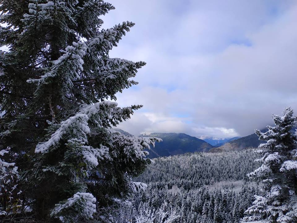 Αυτή την ώρα δεν χιονίζει αντιθέτως έβγαλε ήλιο μ απότέλεσμα το τοπίο να είναι πραγματικά μαγευτικό.