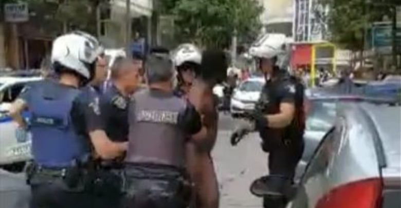 Στο σημείο έφτασε περιπολικό το οποίο τον συνέλαβε. Κατά πληροφορίες, θα μεταφερθεί σε νοσοκομείο της πόλης.