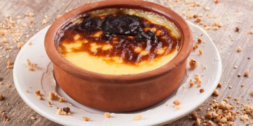 Αδειάζουμε το ρυζόγαλο σε ένα πυράντοχο σκεύος, τοποθετημένο σε ταψί με κρύο νερό.