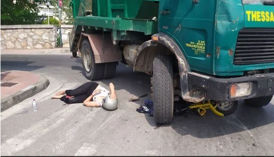 Παραλίγο τραγωδία στον Βόλο. Ένα φορτηγό έσερνε κάτω από τις ρόδες του δικυκλίστρια, με τον οδηγό του να μην έχει αντιληφθεί το παραμικρό.