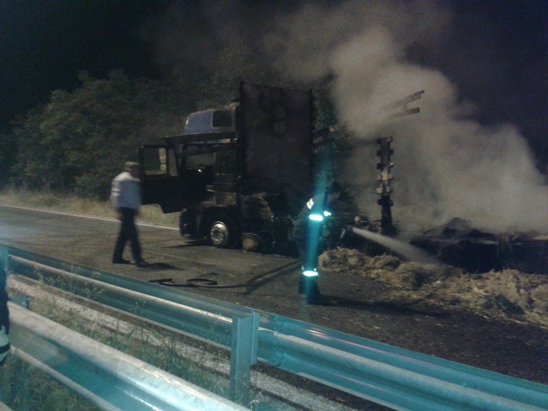 Ευτυχώς ο οδηγός της νταλίκας που είναι από το Μεσολόγγι και μετέφερε μπάλες με άχυρο και τριφύλλι πρόλαβε και βγήκε εγκαίρως από το φλεγόμενο όχημα το οποίο καταστράφηκε σχεδόν ολοσχερώς