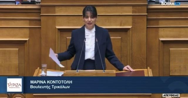 Παρέμβαση της Μαρίνας Κοντοτόλη στην ολομέλεια της Βουλής για τους ελεύθερους επαγγελματίες της Π.Ε Τρικάλων