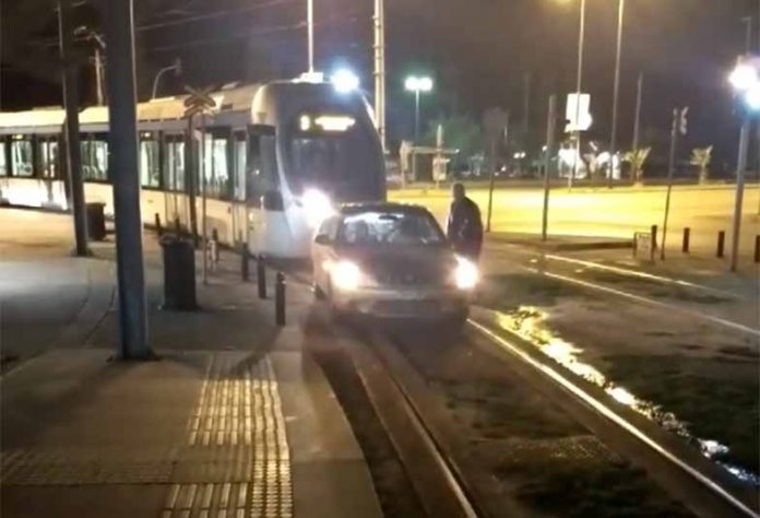 Ένα απίστευτο περιστατικό έλαβε χώρα στη Γλυφάδα, όταν οδηγός πάρκαρε με αλάρμ στις γραμμές του τραμ.