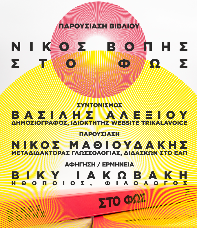 σας προσκαλούν στην παρουσίαση του νέου βιβλίου του Νίκου Βόπη