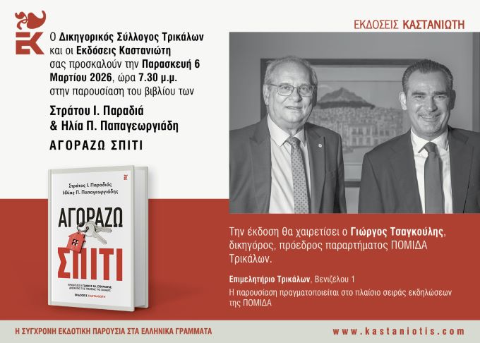 Ο Δικηγορικός Σύλλογος Τρικάλων και οι Εκδόσεις Καστανιώτη,