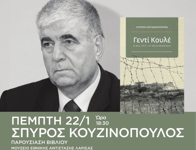 Το Μορφωτικό Ίδρυμα της Ένωσης Συντακτών Ημερήσιων Εφημερίδων Θεσσαλίας, Στερεάς – Εύβοιας, ο Σύλλογος Φίλων του Μουσείου Εθνικής Αντίστασης Λάρισας και οι εκδόσεις ΙΑΝΟΣ, παρουσιάζουν την Πέμπτη 22 Ιανουαρίου 2026, ώρα 18:30 στην αίθουσα εκδηλώσεων του Μουσείου Εθνικής Αντίστασης Λάρισας (οδός Ιουστινιανού 42), το βιβλίο του δημοσιογράφου και συγγραφέα Σπύρου Κουζινόπουλου με τίτλο «Γεντί Κουλέ η Βαστίλη της Θεσσαλονίκης».