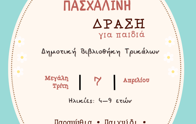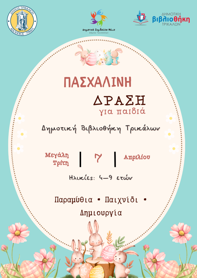 Το Δημοτικό Συμβούλιο Νέων Τρικάλων διοργανώνει πασχαλινή δράση για παιδιά, η οποία