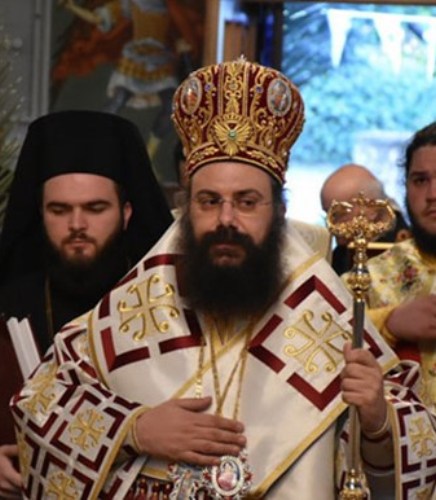 Ἐπί τῷ Ἁγίῳ Πάσχᾳ Χ Ρ Υ Σ Ο Σ Τ Ο Μ Ο Σ Ἐλέῳ Θεοῦ Ἐπίσκοπος καί Μητροπολίτης τῆς Ἁγιωτάτης Μητροπόλεως