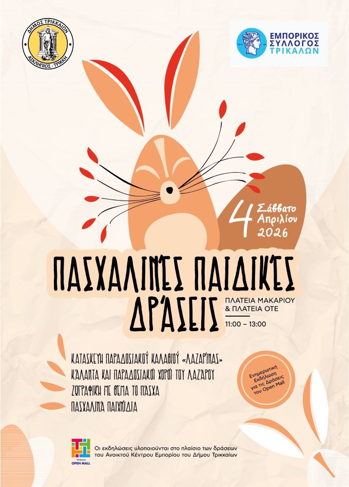 trikaladay.gr / Τοπικά / Πασχαλινή εκδήλωση για τα παιδιά από Δ. Τρικκαίων – Εμπορικό Σύλλογο Τρικάλων σε 2 πλατείες της πόλης