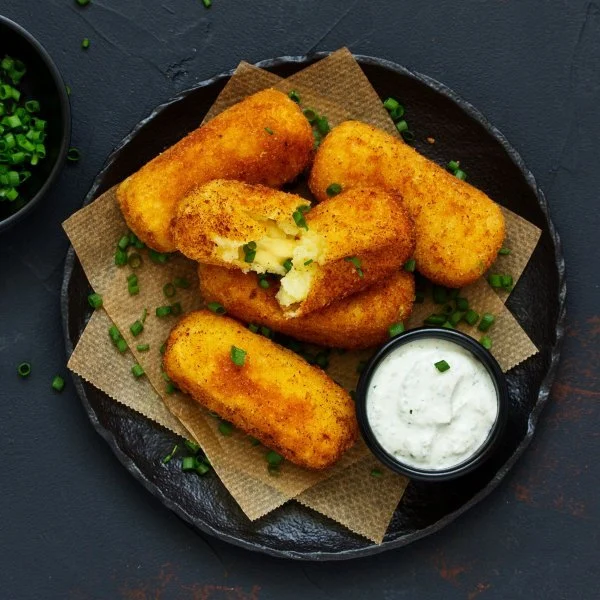 - Πολτοποιήστε όλα τα υλικά για το ντιπ γιαουρτιού στο μπλέντερ και σερβίρετε με τις πατατοκροκέτες.