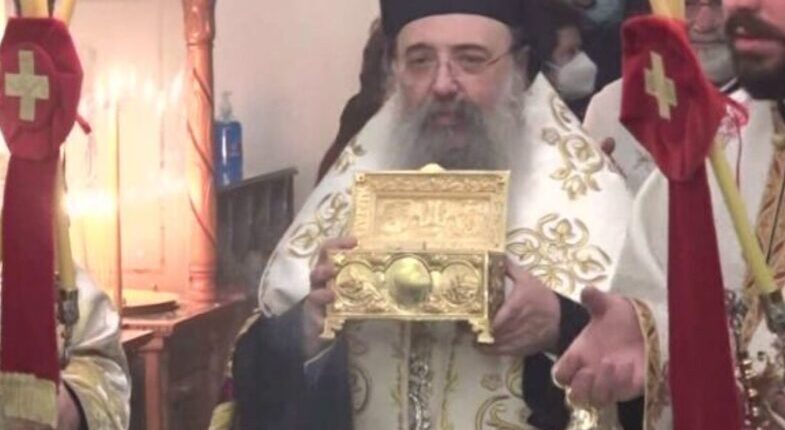 Αστυνομικοί παρέδωσαν την λειψανοθήκη την ώρα που ήταν σε εξέλιξη η λειτουργία του εσπερινού και ακολούθησε η περιφορά της εντός του ιερού ναού με τους πιστούς να προσκυνούν.