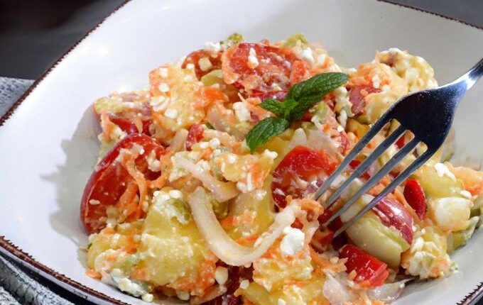 Σας έχουμε ετοιμάσει μια δροσερή πατατοσαλάτα και εξηγούμε τι είναι το ανθεκτικό άμυλο. Όταν λοιπόν τροφές που περιέχουν άμυλο όπως οι πατάτες το ρύζι τα ζυμαρικά κ.α βράσουν κ έπειτα μείνουν για 12 ώρες στο ψυγείο ,ακόμη και να ζεσταθούν μετά, έχει μετατραπεί ένα μεγάλο μέρος του αμύλου τους στο λεγόμενο “ανθεκτικό άμυλο” Με τον τρόπο αυτό, οι υδατάνθρακες συμπεριφέρονται σαν φυτικές ίνες κ πρεβιοτικα, και έτσι μειώνεται αισθητά το γλυκαιμικο φορτίο του γεύματος προλαμβάνοντας την απότομη αυξομείωση που συνήθως προκαλούν στα επίπεδα του σακχάρου κ ταυτόχρονα αποδίδουν λιγότερες θερμίδες στην ίδια ποσότητα τροφίμου. Το ανθεκτικό άμυλο είναι ένας καλός τρόπος να εντάξουν τους υδατάνθρακες κάποιες φορές στην διατροφή τους άτομα που κάνουν δίαιτα για απώλεια βάρους, με αντίσταση στην ινσουλίνη, διαβητικοί ασθενείς