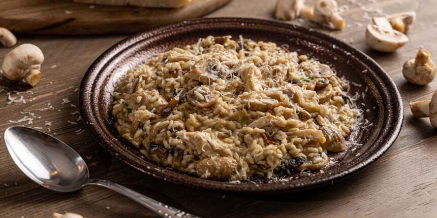 Μαγειρεύουμε το ριζότο σε μέτρια προς χαμηλή φωτιά, χρησιμοποιώντας ξύλινη κουτάλα στο ανακάτεμα. Έτσι δεν σπάμε τους κόκκους του ρυζιού.