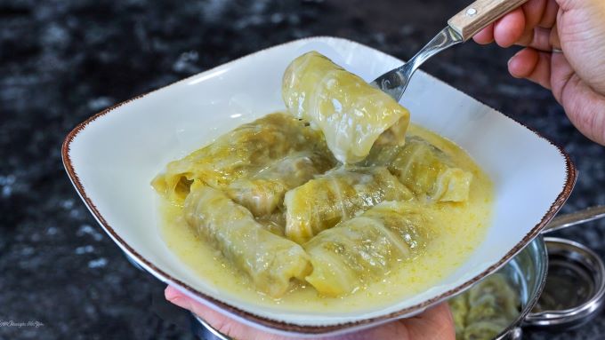 - Στραγγίζουμε τον ζωμό που έβρασε από το λάχανο και τον κρατάμε στην άκρη.