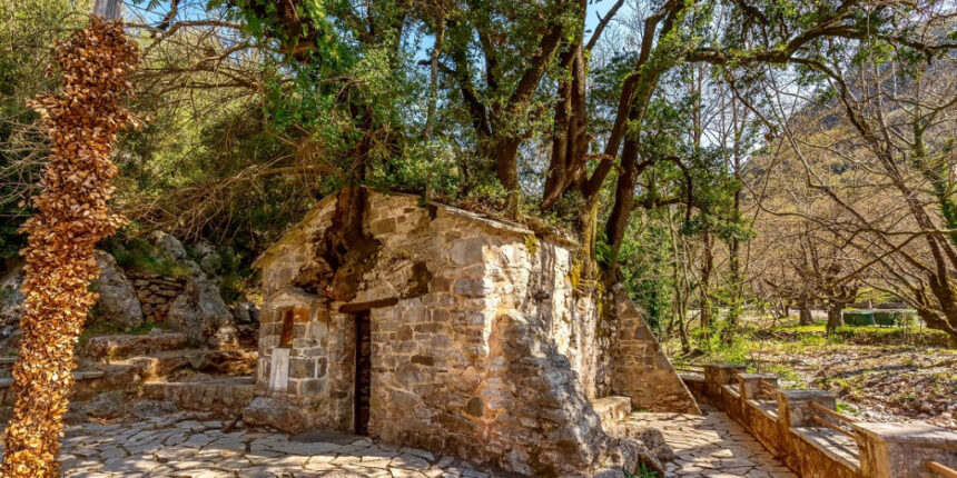Πολλές είναι οι ιστορίες και οι θρύλοι που συνοδεύουν την συγκεκριμένη εκκλησία με τα δέντρα που ξεπηδούν από μέσα της να φτάνουν τα 20 μέτρα. Οι κορμοί των δέντρων σκίζουν τη στέγη ενώ ρίζες δε βλέπεις αλλά αυτές ποτίζονται από το τρεχούμενο νερό που τρέχει ακριβώς δίπλα.