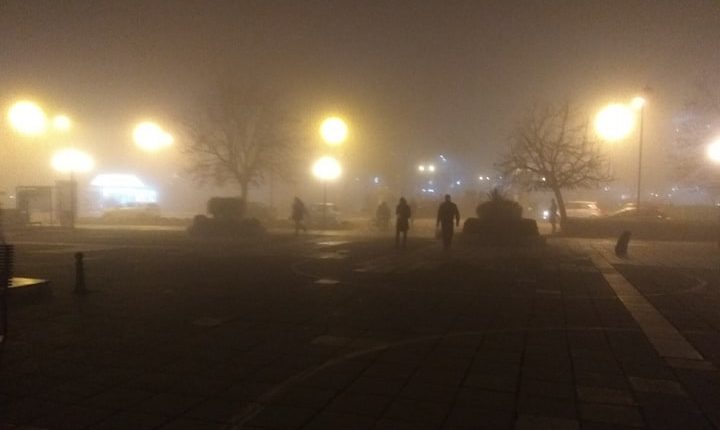 Σκεπάστηκαν με πέπλο ομίχλης απόψε τα Τρίκαλα, ακόμα και στην καρδιά της πόλης.