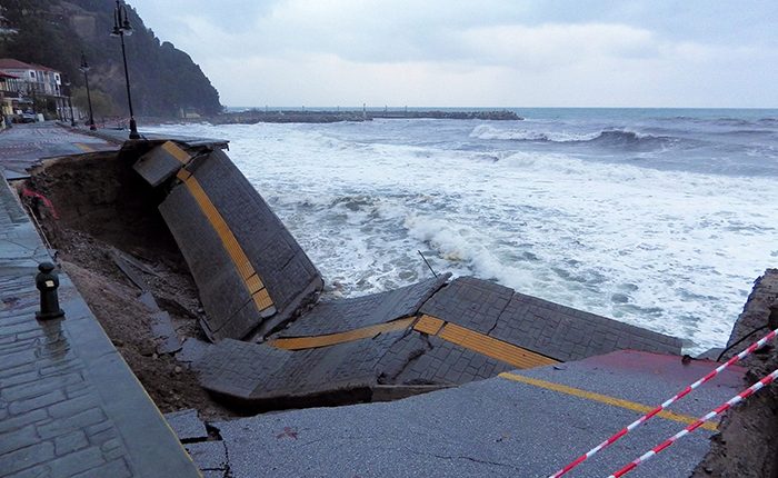 Τεράστια καταστροφή μετρά από χθες το βράδυ η περιοχή του Αη Γιάννη στο Πήλιο. Ο παραλιακός δρόμος από τη μανία των μεγάλων κυμάτων άνοιξε στα δύο. Τα έντονα καιρικά φαινόμενα, με κύριο χαρακτηριστικό τους θυελλώδεις ανέμους και τη δυνατή και μεγάλης διάρκειας βροχόπτωση, άφησαν πίσω τους τεράστια ζημιά.