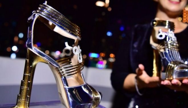Τα πέδιλα παρουσιάστηκαν το Σαββατοκύριακο στο πλαίσιο της Εβδομάδας Μόδας MIDE (Made in Italy, designed in Emirates) στη μαρίνα του Ντουμπάι.