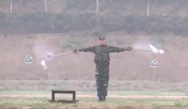 Επικίνδυνες δουλειές, υπάρχουν πολλές. Στο βίντεο από την Κίνα μία απ΄ αυτές! Ελεύθεροι σκοπευτές εκπαιδεύονται σε πεδίο βολής. Οι στόχοι είναι μπαλόνια που κρατά στα δυο του χέρια ένας στρατιωτικός! Πρέπει να πετύχουν τα μπαλόνια κι όχι τον συνάδελφό τους! Τολμηρή και η γυναίκα στρατιωτικός η οποία περπατά μπροστά από τους στόχους την ώρα που οι ελεύθεροι σκοπευτές πυροβολούν! Κι αυτό μέρος της εκπαίδευσης που σίγουρα την λες ρεαλιστική!