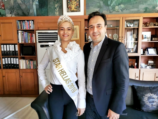 Ελαμψε το Δημαρχείο Τρικκαίων το πρωί της Τετάρτης 23 Οκτωβρίου 2019. Η Σταρ Ελλάς 2019 Ραφαέλα Πλαστήρα, με το στέμμα της νικήτριας επισκέφθηκε τον Δήμαρχο Τρικκαίων. Ο κ. Δημήτρης Παπαστεργίου την υποδέχθηκε δίνοντας συγχαρητήρια και αναφερόμενος σε έναν ακόμη λόγο για τον οποίο τα Τρίκαλα γίνονται πιο γνωστά: την τρικαλινή καταγωγή της νικήτριας του θεσμού, που θα εκπροσωπήσει άμεσα τη χώρα μας και στην παγκόσμια διοργάνωση. Η ίδια αναφέρθηκε στη χαρά της για τη νίκη, αλλά και στη δυναμική που αναπτύσσει για την επιστροφή των Μαρμάρων του Παρθενώνα, μέσω της προσπάθειας “Take me Home”, που ήδη αναπτύσσεται.