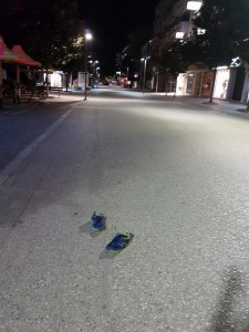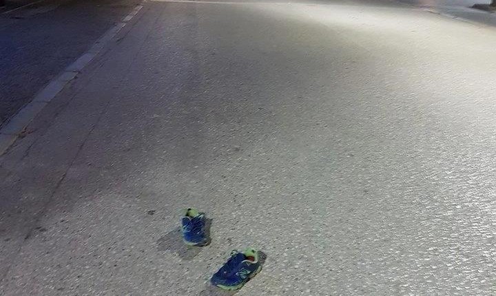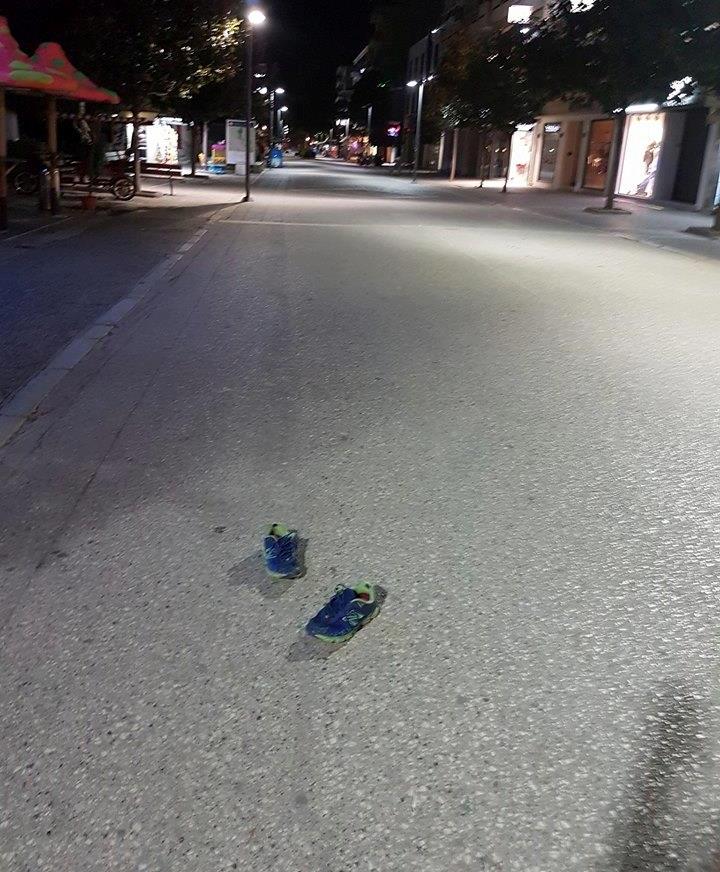 Ο κάτοχος των παπουτσιών προφανώς επέστρεψε ξυπόλητος στο σπίτι του αφήνοντας τα παπούτσια του πάνω στον πεζόδρομο.
