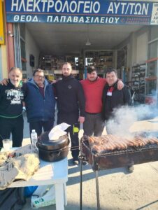 Το έθιμο της Τσικνοπέμπτης τήρησε και φέτος ο γνωστός ιδιοκτήτης ηλεκτρολογείου συνεργείου αυτοκινήτων και λάτρης του μηχανοκίνητου αθλητισμού στα Τρίκαλα, Θεόδωρος Παπαβασιλείου.