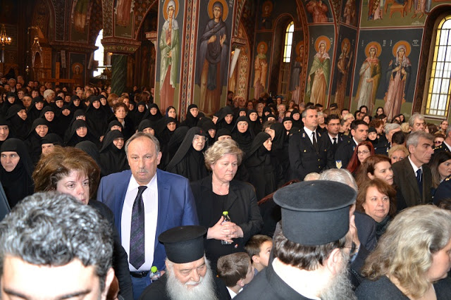 Εκατοντάδες πιστών, κληρικοί και μοναχοί κατέκλυσαν τον Μητροπολιτικό Ναό του Αγίου Βησσαρίωνος για να παρακολουθήσουν την εξόδιο ακολουθία η οποία τελέστηκε προεξάρχοντος του Αρχιεπισκόπου Αθηνών και πάσης Ελλάδος κ. Ιερώνυμου συμπαραστατούμενου πολλών Αρχιερέων της Ελληνικής Ορθόδοξης Εκκλησίας.