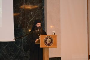 Στην προσφώνησή του ο Πρωτοσύγκελος και Καθηγούμενος της ΙΜ Μεγάλου Μετεώρου, Αρχιμανδρίτης Νήφων Καψάλης τόνισε ότι είναι ιδιαίτερη η χαρά της Μητροπόλεως και των Αγίων Μετεώρων για την έναρξη λειτουργίας της Ακαδημίας με στόχο να επιτελέσει ένα σημαντικό ρόλο για το σκοπό που ιδρύθηκε και ευχαρίστησε όλους όσους συνέδραμαν προς αυτή την κατεύθυνση.