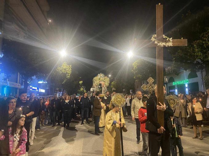 Πλήθος κόσμου στην περιφορά των Επιταφίων στα Τρίκαλα