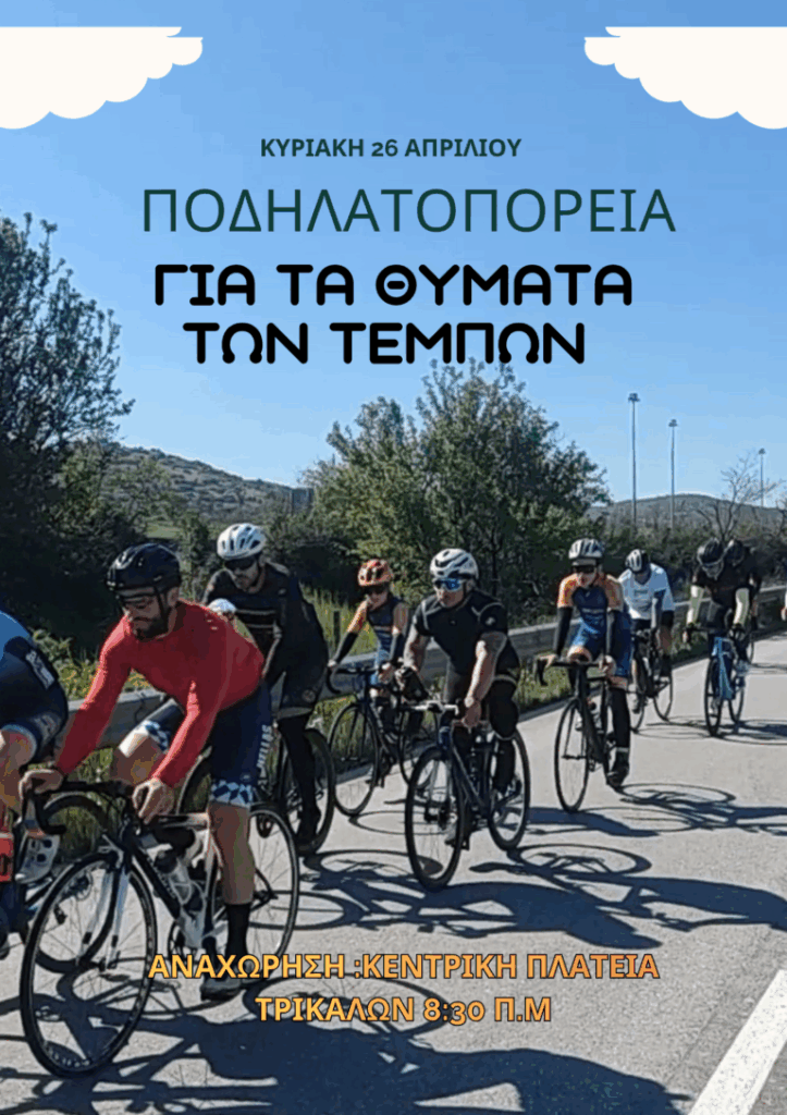 Η ποδηλατοπορεία θα είναι ελεύθερη για όλους, καλούμε τους ποδηλάτες απο ολη την Ελλάδα ώστε να τιμήσουμε τα θύματα του δυστυχήματος των Τεμπών !