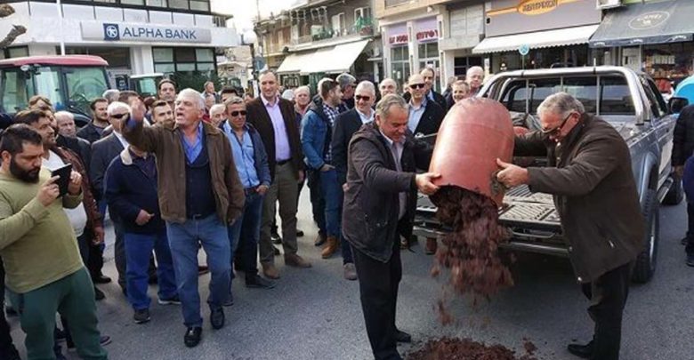 Φτάνοντας στην κεντρική πλατεία σε ένδειξη διαμαρτυρίας για την κατάσταση που έχει δημιουργηθεί αλλά και προειδοποιώντας για το τί θα ακολουθήσει σε περίπτωση που δεν τους επιτραπεί να αποστάξουν πέταξαν στο δρόμο στέμφυλα, που βρίσκονται κυριολεκτικά ένα βήμα πριν την καταστροφή λόγω της μεγαλύτερης παραμονής τους στις στέρνες.