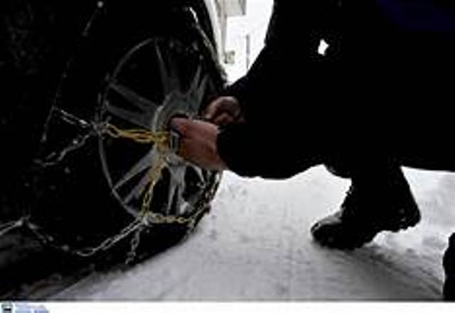 Η κυκλοφορία των οχημάτων διεξάγεται με τη χρήση αντιολισθητικών αλυσίδων: