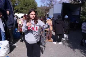 Εθελοντές στη Σμύρνη βρίσκονται νυχθημερόν σε δύο κεντρικά σημεία της πόλης και παραλαμβάνουν μεταχειρισμένα ρούχα, τα οποία στη συνέχεια φορτώνονται σε φορτηγά για να μεταφερθούν στις πληγείσες περιοχές.