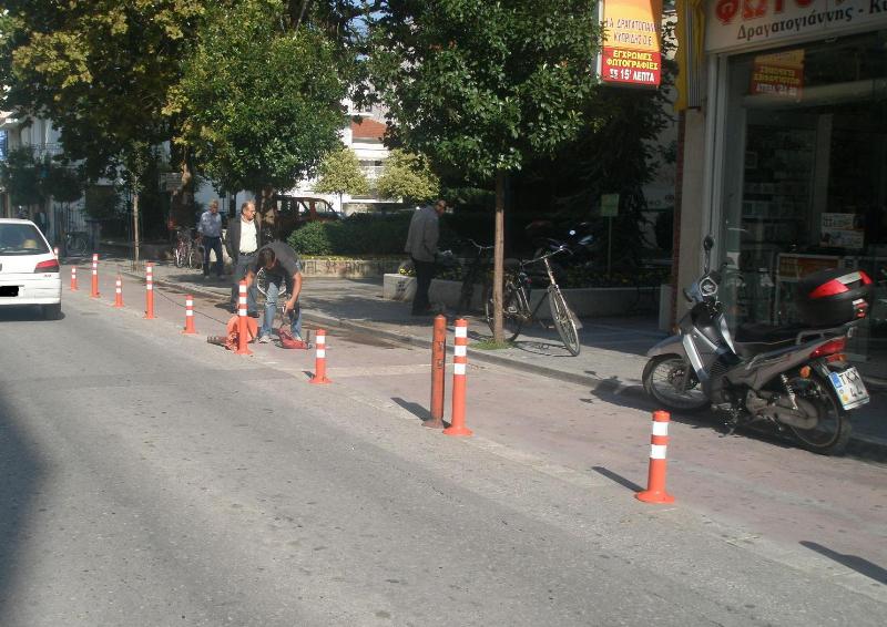 – σύγχρονες προδιαγραφές (στα Τρίκαλα εφαρμόζονται πρώτη φρά σε όλη τη χώρα, οι νέες διατάξεις του υπουργείου Μεταφορών για τους ποδηλατοδρόμου).