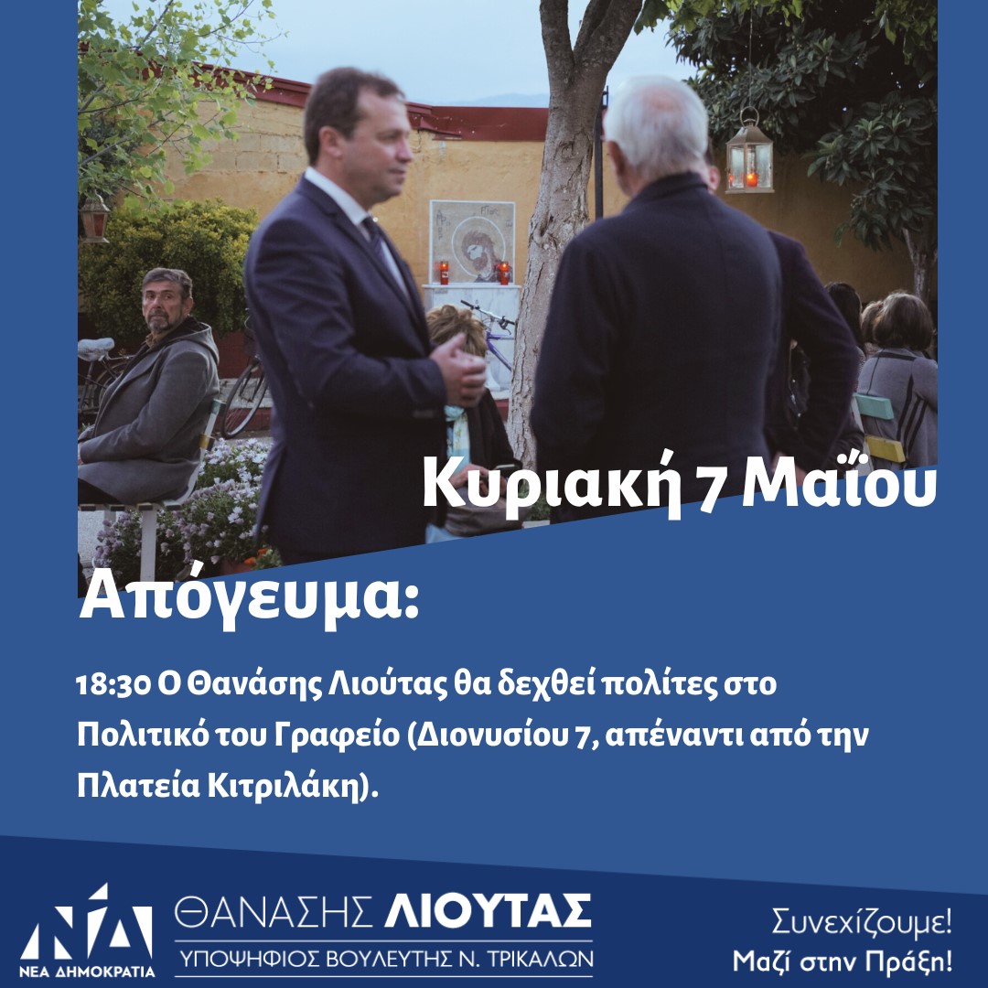 18:30 Ο Θανάσης Λιούτας θα δεχθεί πολίτες στο πολιτικό του γραφείο (Διονυσίου 7,
