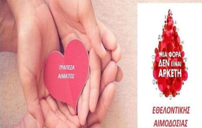 εθελοντική αιμοδοσία, με στόχο τη συλλογή ικανού αριθμού φιαλών αίματος, για την