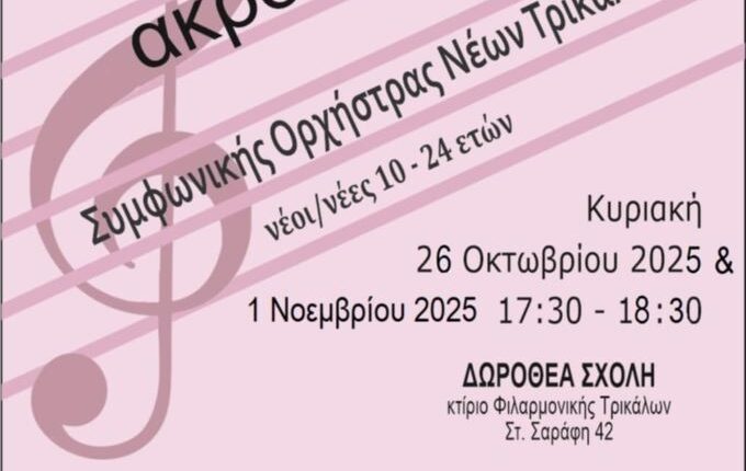 έρθουν στις ακροάσεις για την τη Συμφωνική Ορχήστρα Νέων Τρικάλων (ΣΟΝΤ) για την