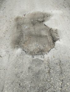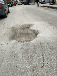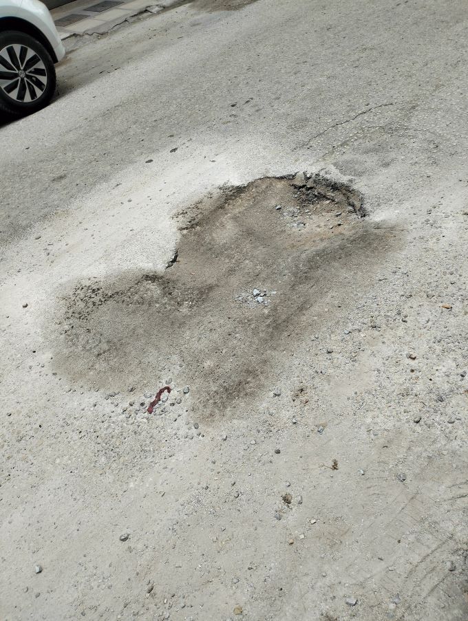 Αυτή η λακούβα κλείνεται προχείρως από συνεργεία του Δήμου και λίγες μέρες μετά ανοίγει ξανά.