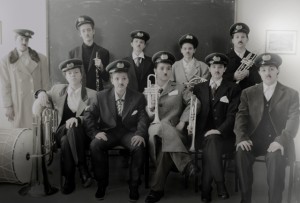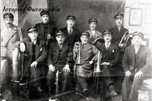 Κάτω από αριστερά : Κωνσταντίνος Λαζαρίκος : μπάσο, Λάζαρος Ζιώγκας : τζένις, Στέφανος Γιωτάκης : τρομπέτα, Μάνιας : τρομπόνι, Γιάννης Γιωτάκης : ταμπούρο