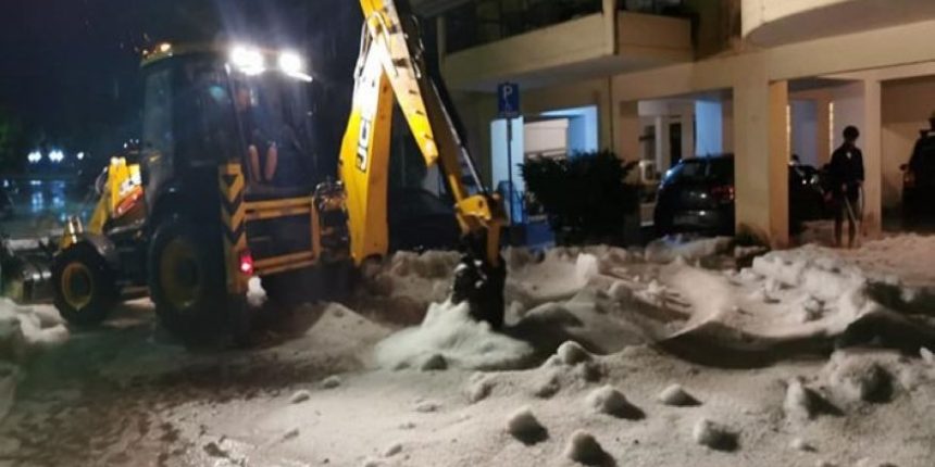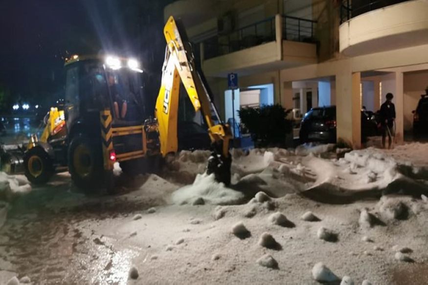Πρωτοφανής χαλαζόπτωση έπληξε το βράδυ της Τρίτης την πόλη της Δράμας, με αποτέλεσμα να προκληθούν εκτεταμένα προβλήματα σε πολλές γειτονιές. Ο όγκος της χαλαζόπτωσης ήταν τόσος, που σε ορισμένους δρόμους σχηματίστηκε ένα πυκνό στρώμα που έφτασε μέχρι και τα 30-40 εκατοστά, ενώ χρειάστηκαν εκσκαπτικά μηχανήματα προκειμένου να ανοίξουν οι δρόμοι.